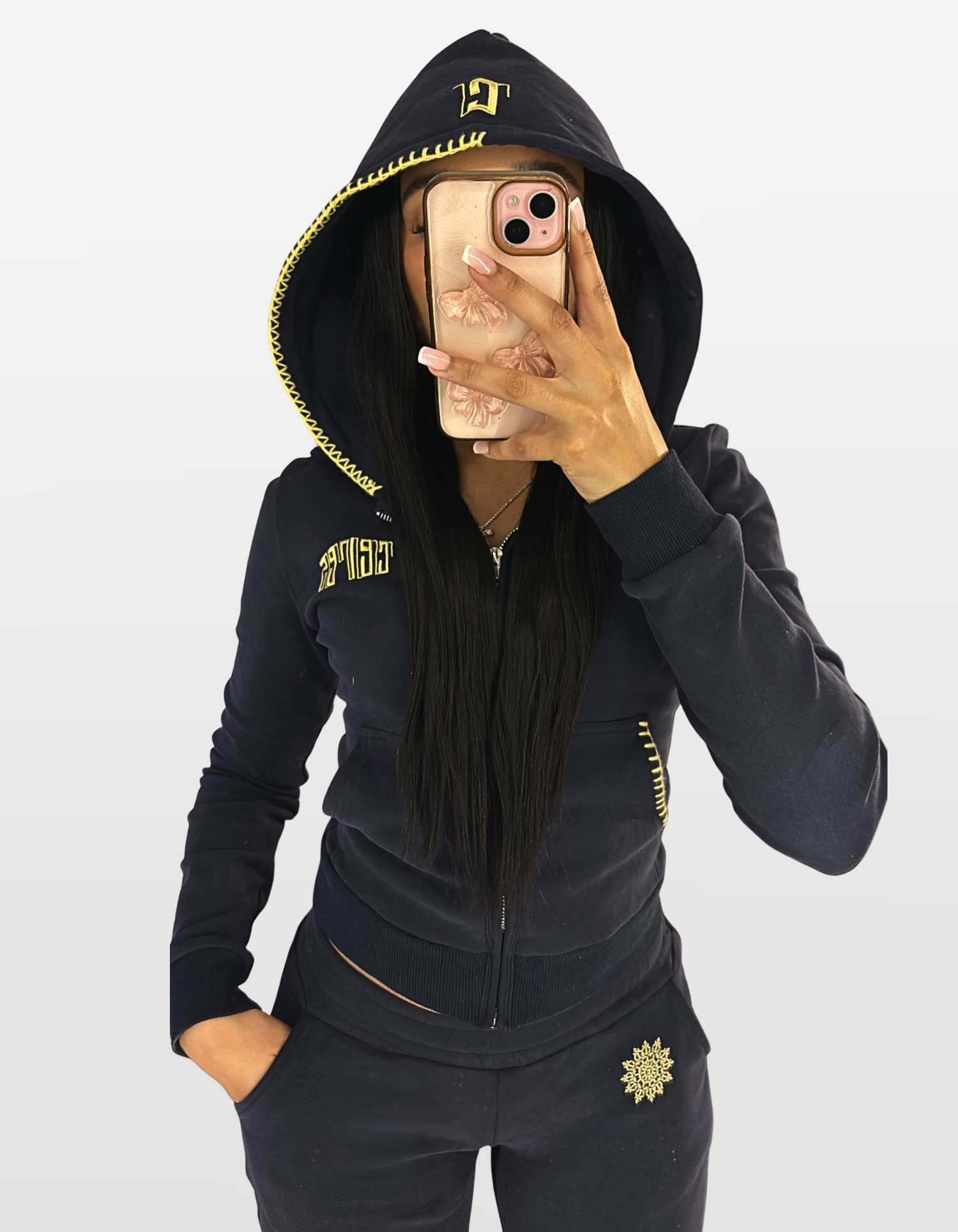 A cozy, winter essential that feels as good as it looks. Ultra low-rise pants and a form-fitting zip up.